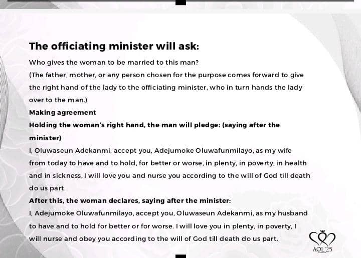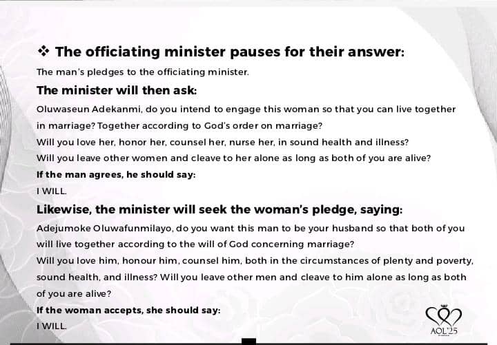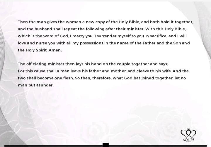 The couple is joined in holy matrimony and blessed by the minister, surrounded by the prayers of family and friends.