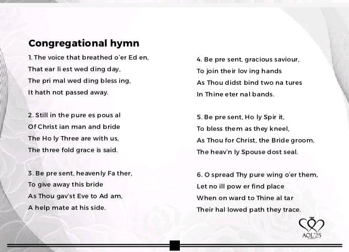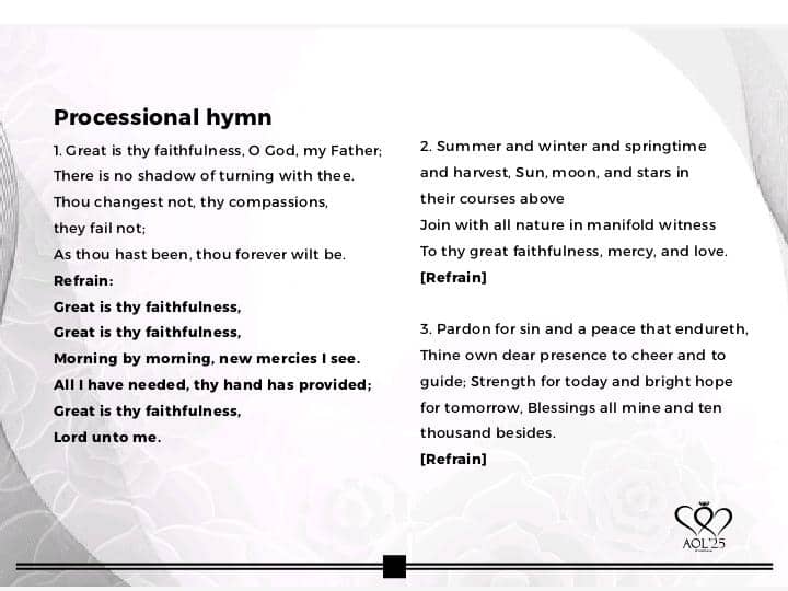 The bridal procession enters as this timeless hymn fills the air, a melody of grace and steadfast love.